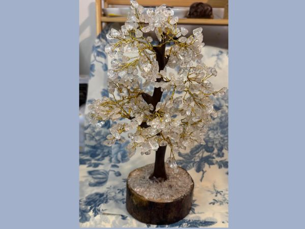 Arbre du Bonheur Quartz sur une base en bois (27/30 cm de haut)