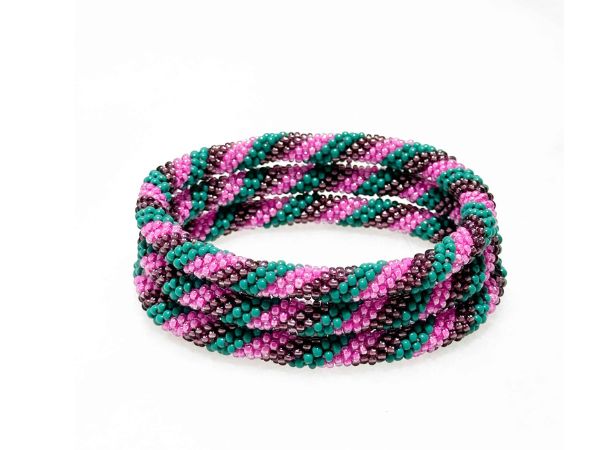 💚 Bracelet népalais vert rose et violet  – fait main au Népal (vendu à l’unité)