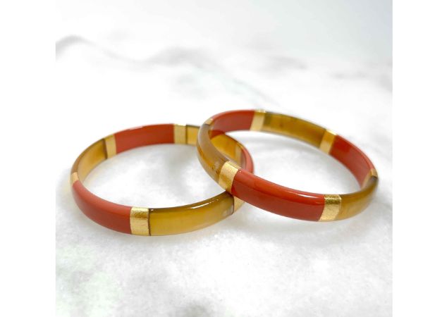 Bracelet Saumon et feuilles d’or en corne véritable – 1,2 cm
