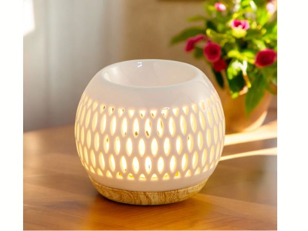 Offrez à votre intérieur une ambiance apaisante et raffinée avec ce magnifique brûle-parfum en céramique « Treillis ». Accompagné de fondants parfumés (en vente sur notre site) il assurera une diffusion douce et élégante.