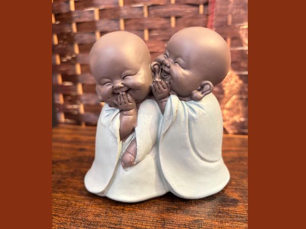 • Figurine Bouddha & bonze : Ces deux bonzes, dans leur pose complice, incarnent la joie simple, le calme intérieur et l’harmonie. Une décoration qui parle au cœur.