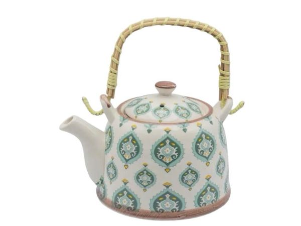Théière en céramique (800 ml) avec infuseur en métal – Motif Gouttes vertes